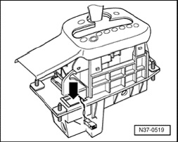 Component location: The shift lock solenoid is located in the shift control mechanism (arrow).