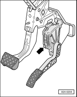 Component location: The brake light switch -arrow- is located on the pedal cluster.