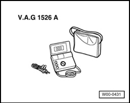 ^ For testing, use Multimeter V.A.G. 1526 A or VAS 5051 Vehicle Diagnosis, Measurement and Information System. The charts contain the specific measurement methods which have to be set up before the corresponding measurements.
