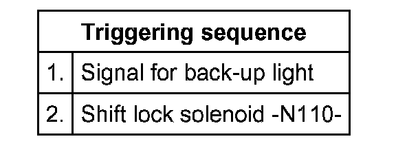 ^ The shift lock solenoid -N110- is triggered at intervals for about 1 minute (clicks) unless actuator diagnosis is terminated by touching the --> button.