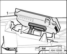 - Disconnect adapter cable - 2 - for HID headlamp bulb at control module - 1 -.