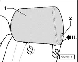 - Press release button - 2 - on headrest - 1 - until stop - arrow -.