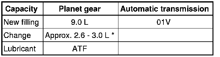 Only ATF available as a replacement part must be used in the planetary gear of the automatic transmission 01V.