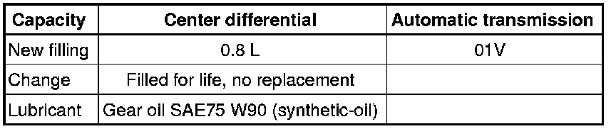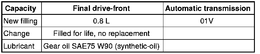 * Filled for life: Replacement only after repair, when oil pan is removed, up to 3 liters.
