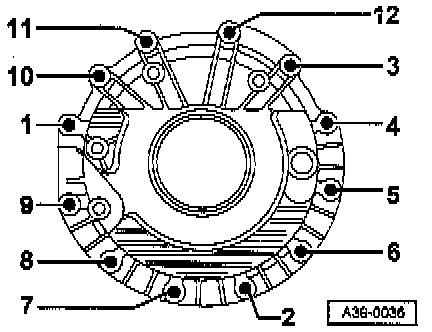 - Tighten bolts - 1 through 12 - in sequence listed to 23 Nm.