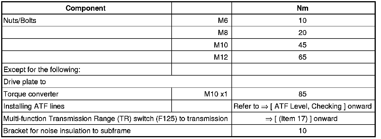 • Tightening torques are valid only for nuts and bolts that are lightly greased, oiled, covered with a thin coat of phosphate or blackened.