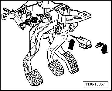- Guide clutch pedal switch (F36) through mounting hole, press against clutch pedal and attach by turning 45° clockwise.