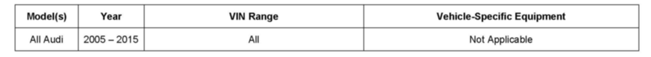 This TSB is informational only and not applicable to any Audi warranty.