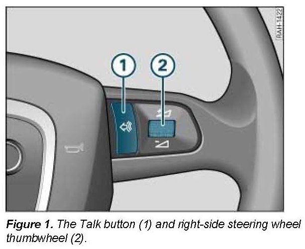 3. Activate voice control using the Talk button (Figure 1, Area 1) on the steering wheel and say the command Help.