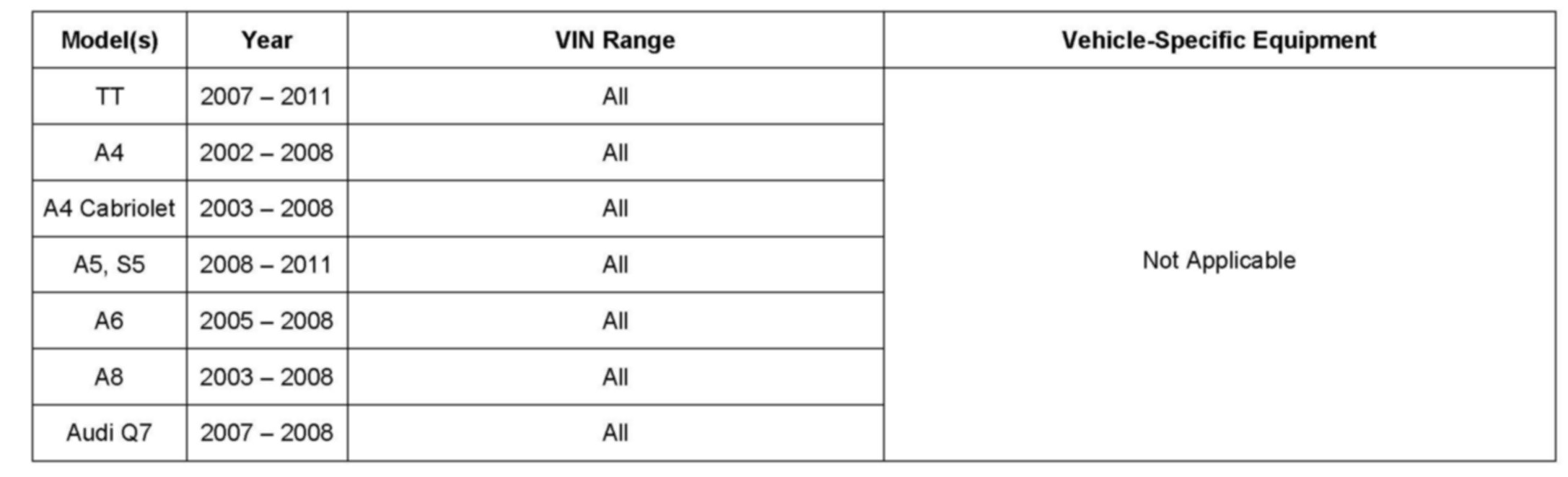 This TSB is informational only and not applicable to any Audi warranty.