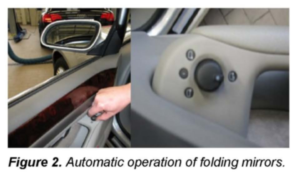 ^ Door mirrors do not fold simultaneously, e.g. one or the other mirror folds independently of the other.