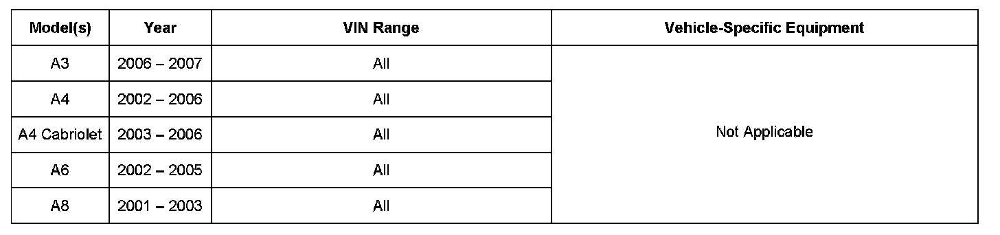 All parts and service references provided in this TSB are subject to change and/or removal. Always check with your Parts Department and service manuals for the latest information.