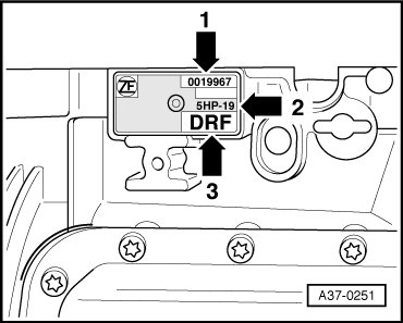Transmission code letters are located on the data plate under the transmission (arrow).