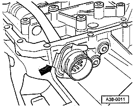 - Tighten bolt - arrow - for Transmission Vehicle Speed Sensor (VSS) (G38)/Transmission Output Speed (RPM) Sensor (G195).