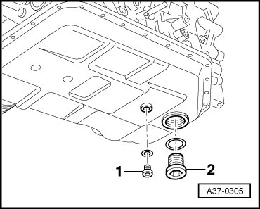 - Remove ATF drain plug - 1 - and allow ATF to drain.