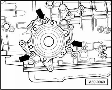 - Insert ATF pump bolts with new sealing washers into ATF pump housing.