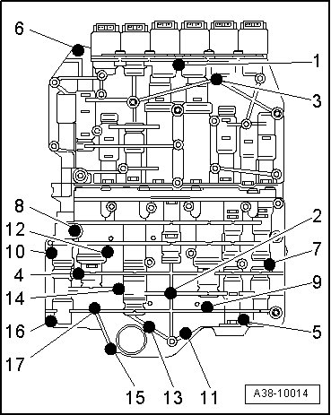 - Loosen valve body bolts - 17 to 1 - in sequence and remove them completely.