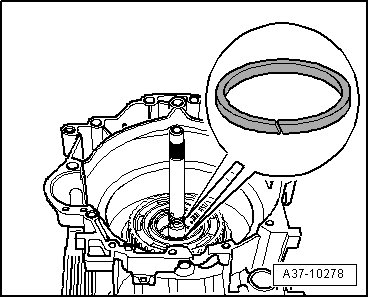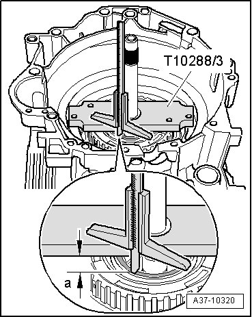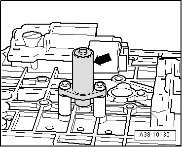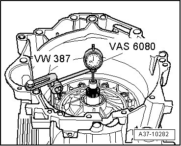 - Insert Dial gauge (VAS 6080) with dial gauge extension onto input shaft of transmission, as depicted in illustration.