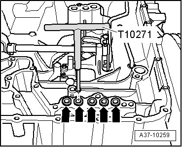 - Attach ATF supply with corresponding bores onto guide pins (T10288/4).