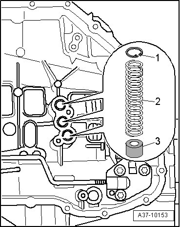 - Insert coil springs - 2 - and secure with circlips - 1 - by pressing circlips into hole down to shoulder.