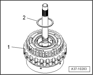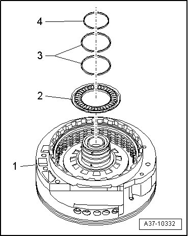 - Thinly coat back side of axial needle bearing - 2 - with Vaseline. Use only Vaseline, other lubricating substances cause functional problems in the hydraulic transmission control.