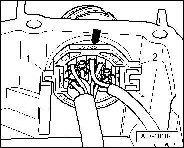 - Remove circlip - arrow - for wiring harness/harness connector.