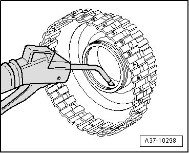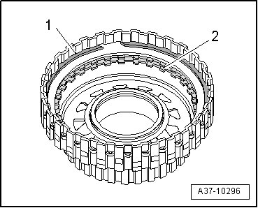 - Remove circlip - 1 - and remove disc pack - 2 - from cylinder "B".