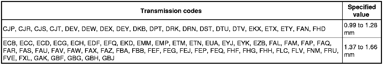 Clutch "B" air gap - Automatic Transmission 01V Front Wheel Drive