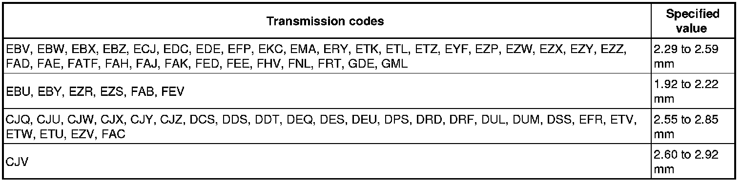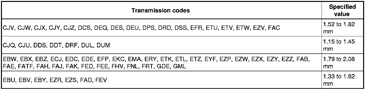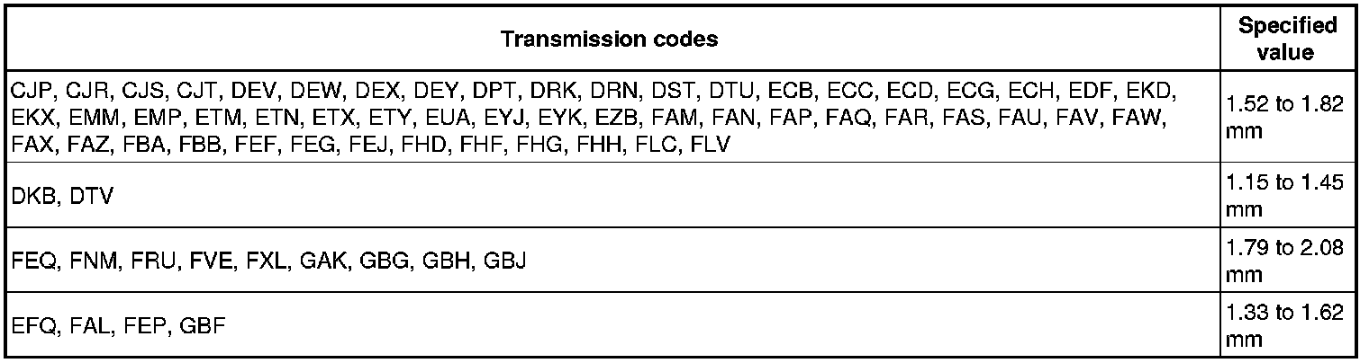 Clutch "D" air gap - Automatic Transmission 01V All Wheel Drive
