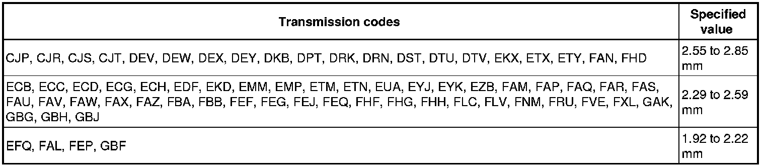 Clutch "D" air gap - Automatic Transmission 01V Front Wheel Drive