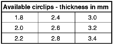 - Determine new circlip - 1 - according to the following table.