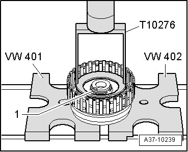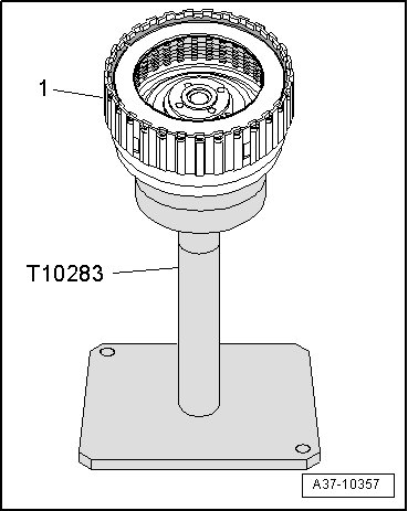 - Place clutch "E" - 1 - in mounting device (T10283).