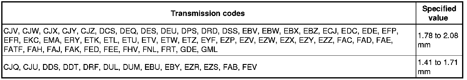 Clutch "E" air gap - Automatic Transmission 01V All Wheel Drive