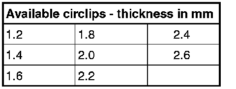- Determine new circlip - 1 - according to the following table.