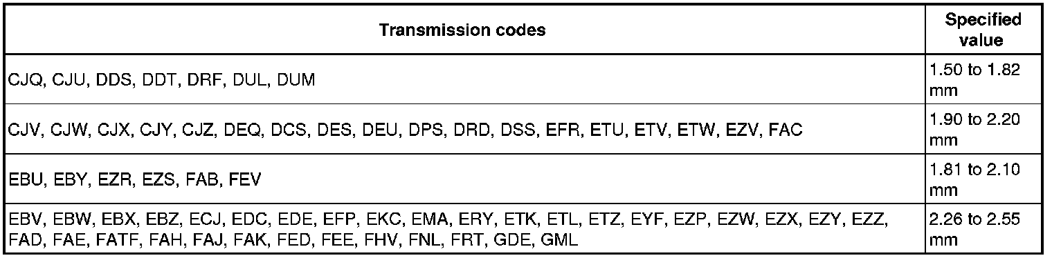 Clutch "F" air gap - Automatic Transmission 01V All Wheel Drive