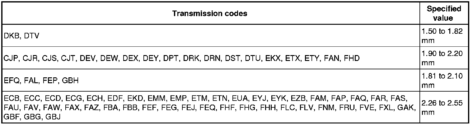 Clutch "F" air gap - Automatic Transmission 01V Front Wheel Drive