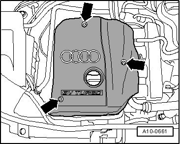 - Remove the engine cover - arrows -.