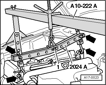 - Pretension the engine on the engine support bridge spindles, but do not lift.
