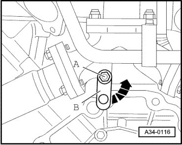 - Remove the Engine Speed (RPM) Sensor (G28) - arrow B - from the transmission.