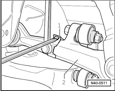 - Unclip retaining clip for coupling rods - 1 - of Left Front Level Control System Sensor (G78) from left front control arm - 2 -.