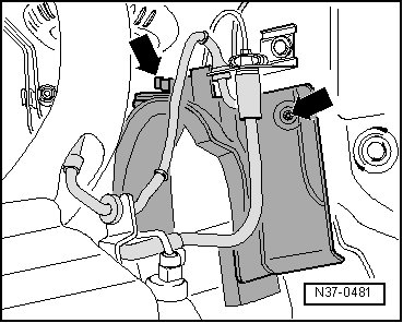 - 2.5L TDI engine: remove the noise insulation for the left driveshaft from the wheel housing - arrows -.