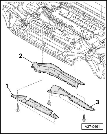 - Remove vehicle floor plates at inside left - 3 - and inside right - 1 -, if necessary.