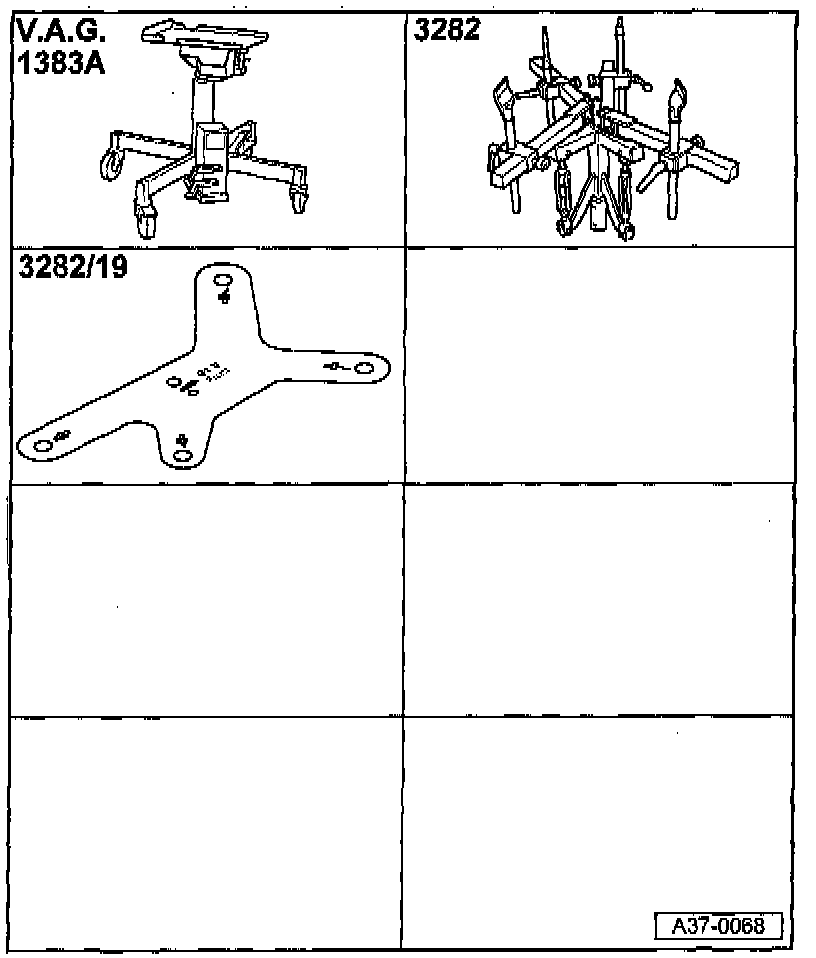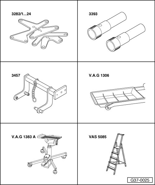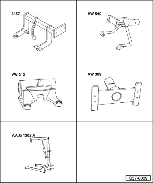 • Engine/transmission support (VAG1383A) engine/gearbox jack