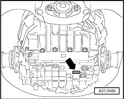 Code letters and serial number of transmission are stamped on underside of transmission housing -arrow-.