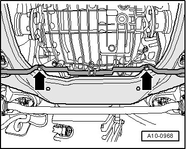 - Support the tunnel crossmember using the engine and transmission jack (VAG 1383 A).