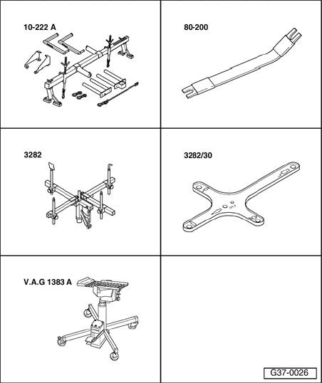 - Mount transmission support 3282 on Engine/Transmission Jack V.A.G 1383 A.
