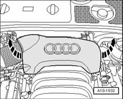 - Remove rear engine cover -arrows-.