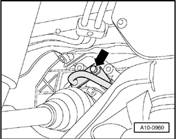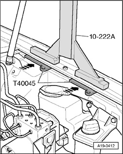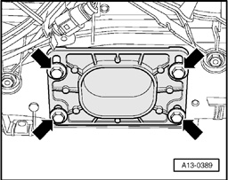 - Raise transmission slightly using Engine/Transmission Jack V.A.G 1383 A.