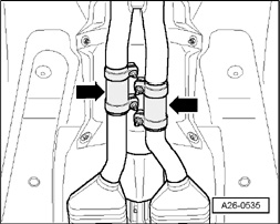 - Disconnect exhaust system at both double clamps -arrows-.