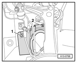 - Disengage hook -2- and remove noise insulation cover.